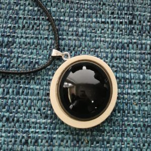 Colgante de Shungita y madera 2 colores; anaranjado o beige.